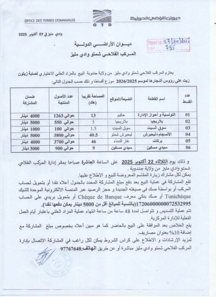 2026/2025 بيع بالمزاد العلني الاختياري لصابة زيتون زيت على رؤوس أشجارها لموسم