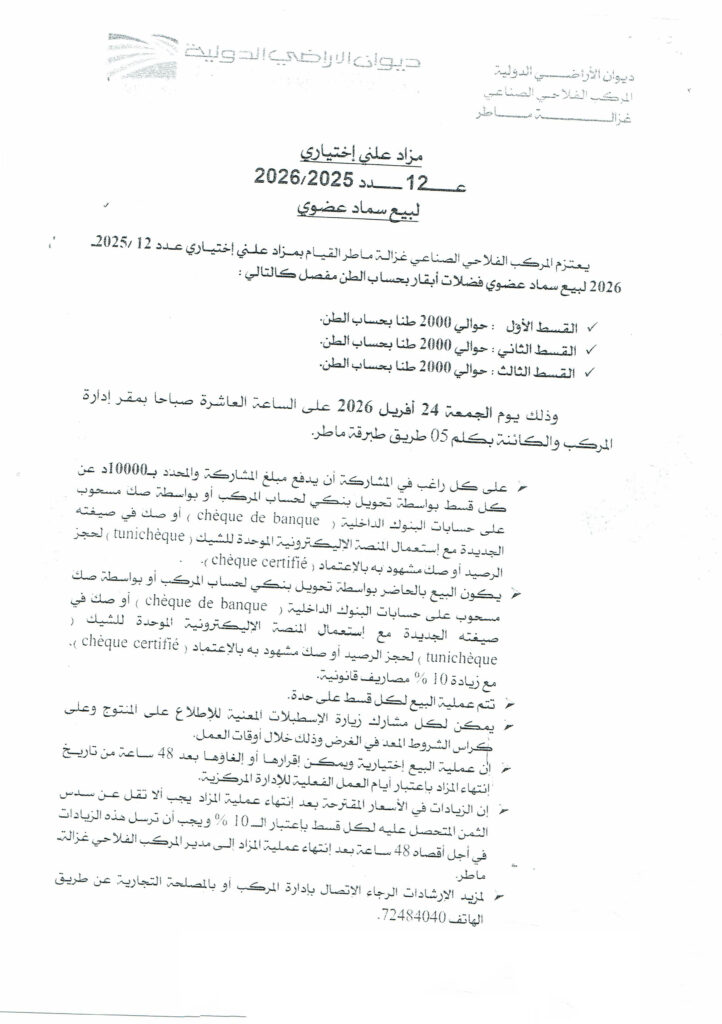مزاد علني إختياري عدد 12 2026/2025 لبيع سماد عضوي