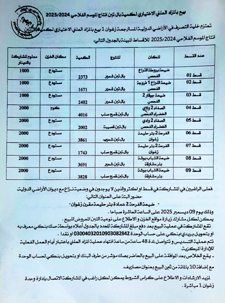 بيع بالمزاد العلني الإختياري لكمية بال تبن